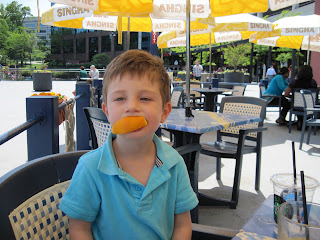 We went to a winery north of Baltimore Sunday afternoon and spent hours picnicking, drinking cold white wine (quickly, so it would not get warm), enjoying the company of good friends, and listening to a Jimmy Buffet tribute band. To prepare the kids, we indoctrinated them with a Buffet "Best of" CD so that they would enjoy the performance. Ever since, Finn has been walking around singing smatterings of "Cheeseburger in Paradise" ad nauseum.